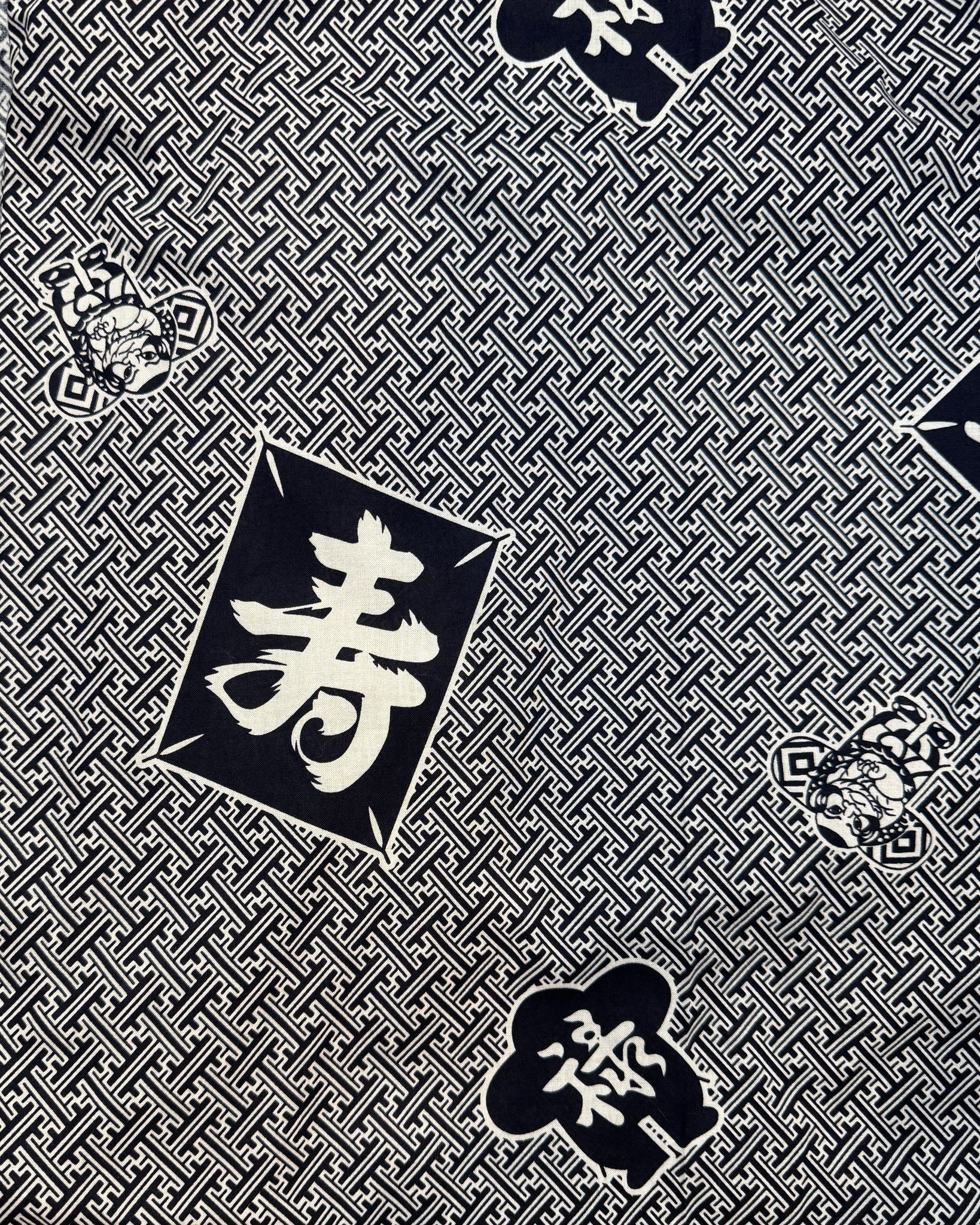 This casual unisex bathrobe to wear around the house or after a shower has a graphic pattern that suits a bold personality - flying kites with kanji characters and fun faces. Comes paired with a matching belt. This robe is made with a narrow width for boy’s 10-13 years old.