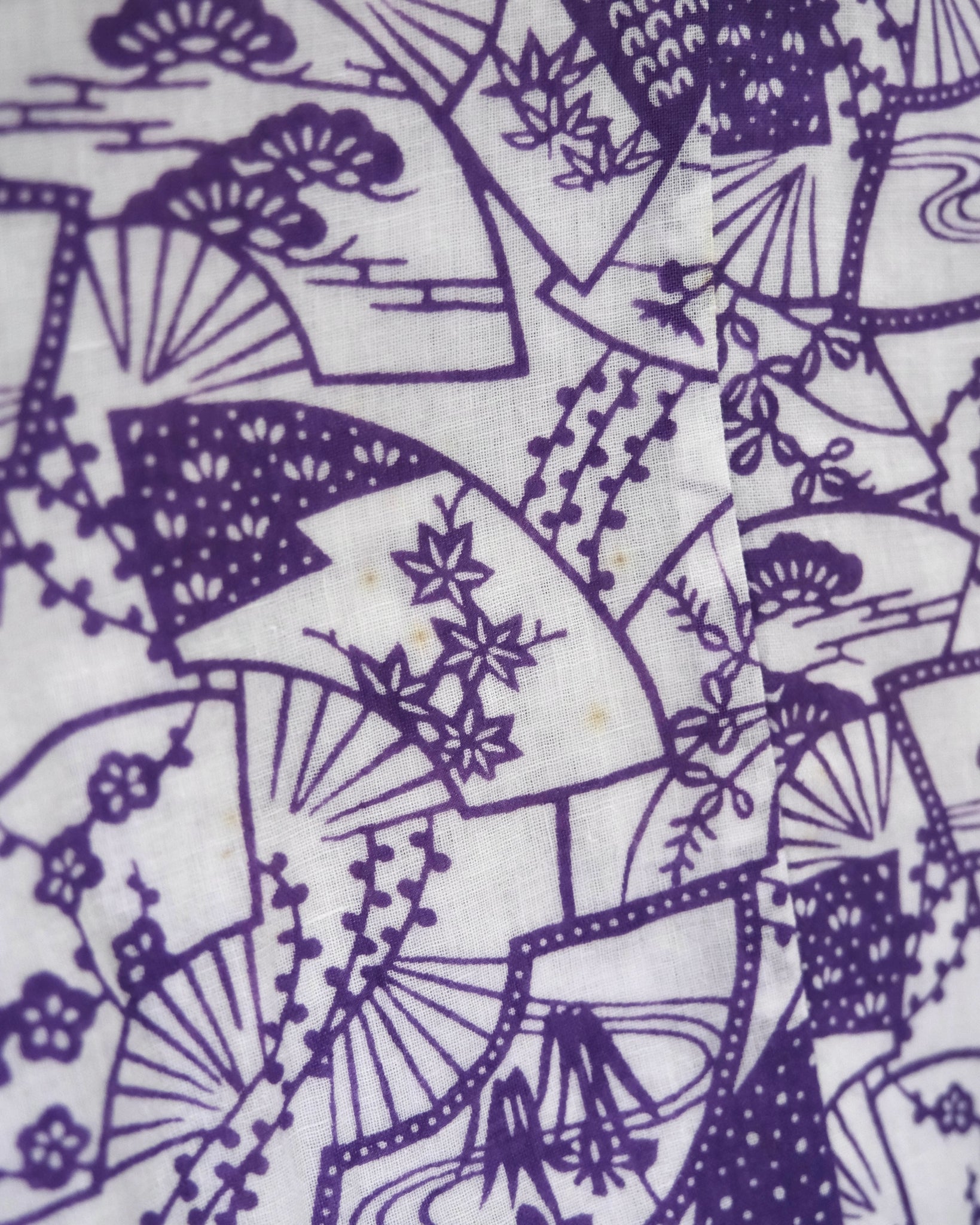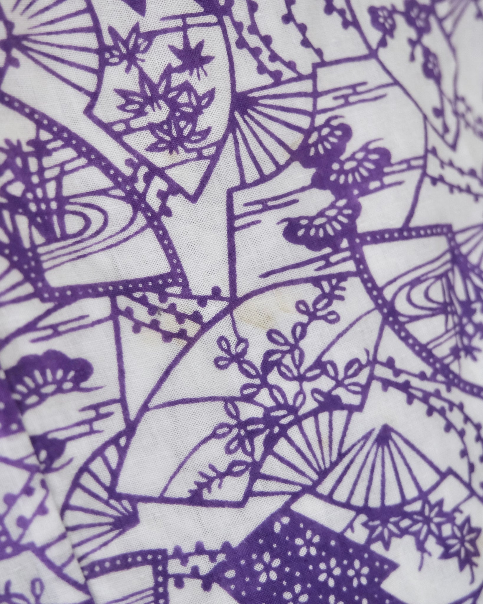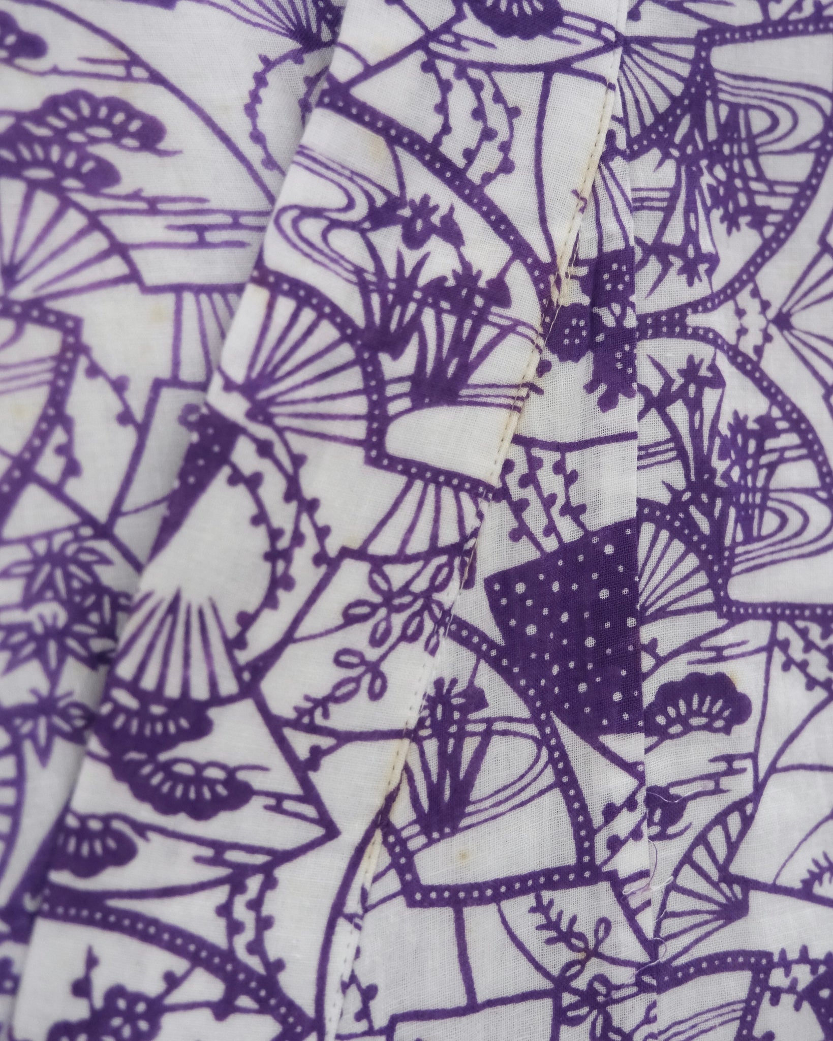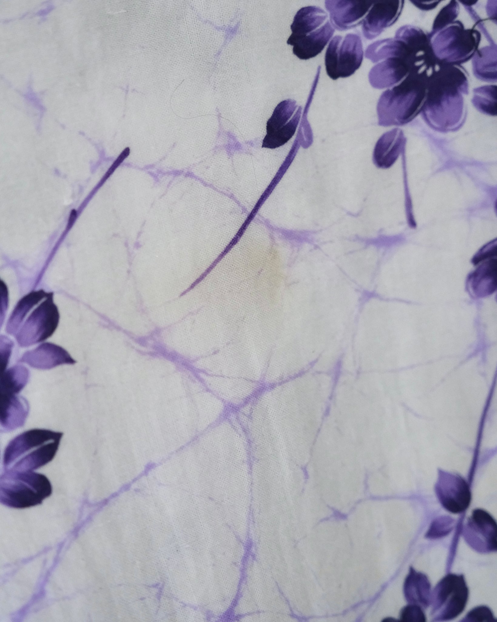 A comfortable white robe lined in soft cotton gauze with different floral patterns and leaves to make a flowery print to wear after a bath. Comes with matching belt. Nemaki
